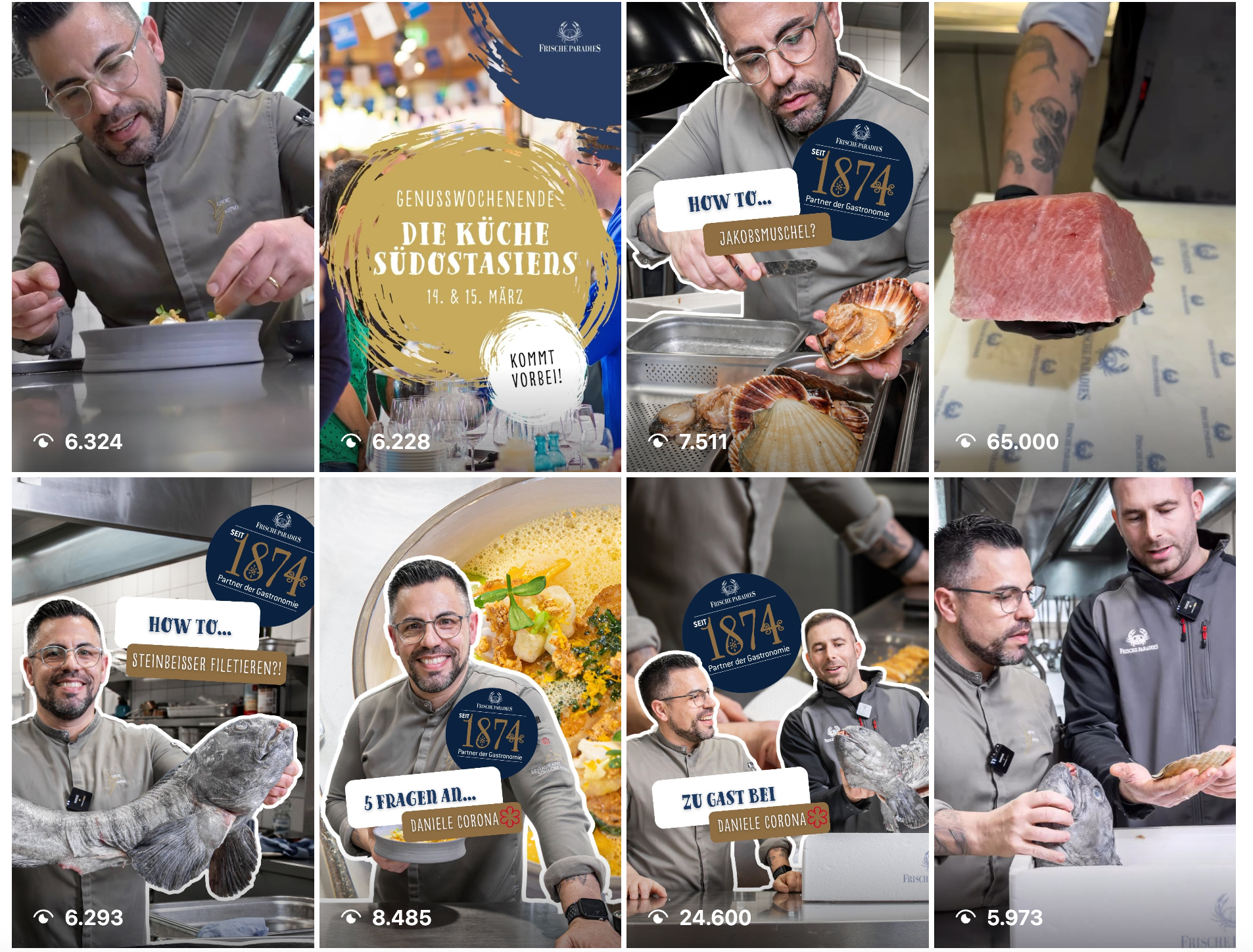 Das Frischeparadies ist quasi der Olymp der Lebensmittelbranche - als Zulieferer der gehobenen Gastronomie, aber auch mit 9 Märkten in Deutschland und auf Mallorca ist Frischeparadies die erste Adresse für Spitzenköche und (private) Gourmets. 2024 wurde das Frischeparadies 150 Jahre alt und feiert dieses Jubiläum mit einer Videoreihe, gemeinsam mit seinen besten Kunden. Und frei nach dem Frischeparadies-Motto: "Von allem das Beste" dürfen wir dem Who is Who der deutschen Spitzenküche in die Töpfe schauen, uns von den Besten der Besten inspirieren lassen und echte Profi-Tipps abholen. Denn es gibt nicht nur die Hauptvideos "Zu Gast bei..." oder "Frage an..." , die es auch auf die Unternehmenswebsite und den offiziellen YouTube Kanal schaffen, sondern auch noch jede Menge Zusatzmaterial, wie How-To`s, Produktvorstellungen, Tellerpräsentationen und vieles mehr für die Social Media Kanäle.